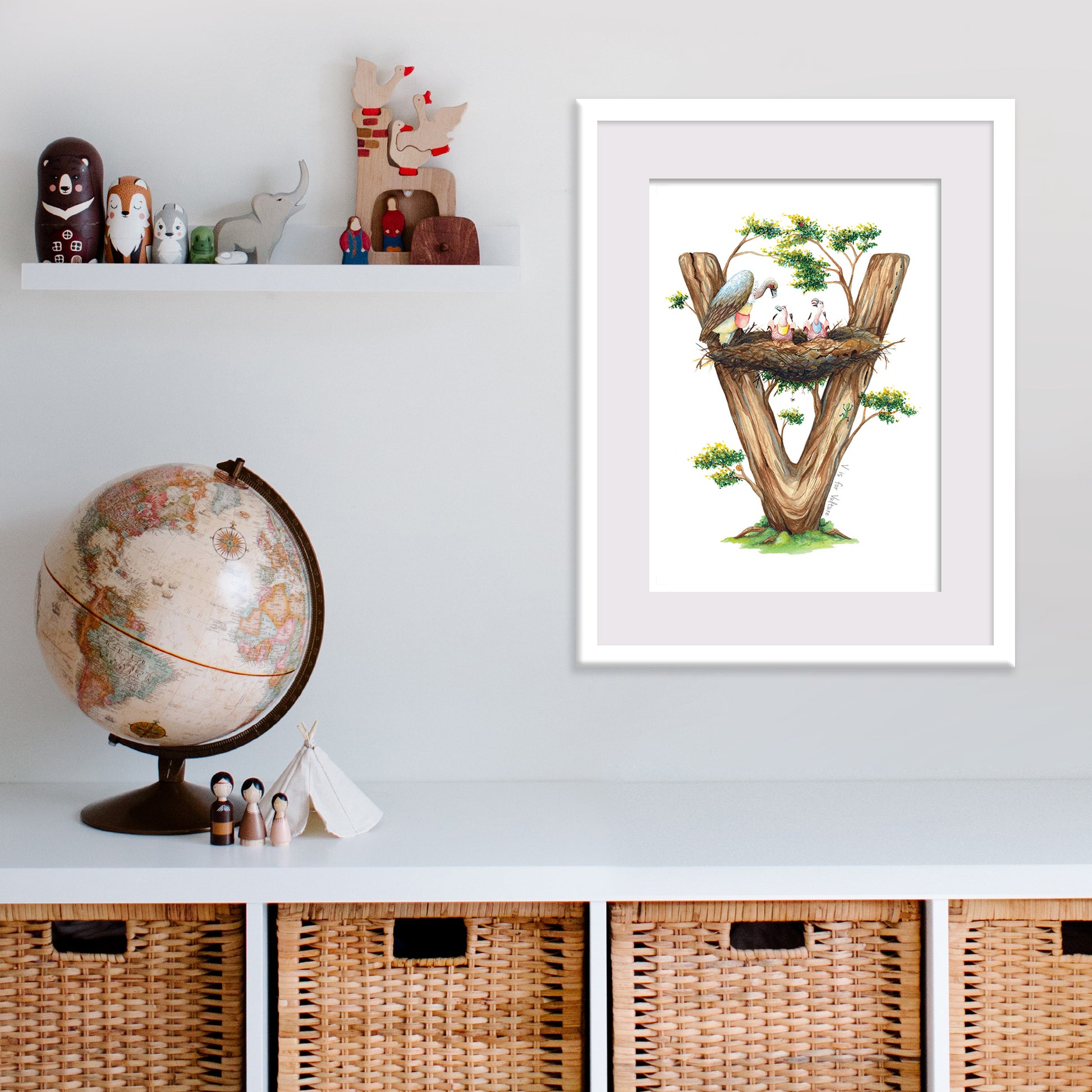 Gorgeous and unique wall art illustration, perfect for a baby nursery or playroom!